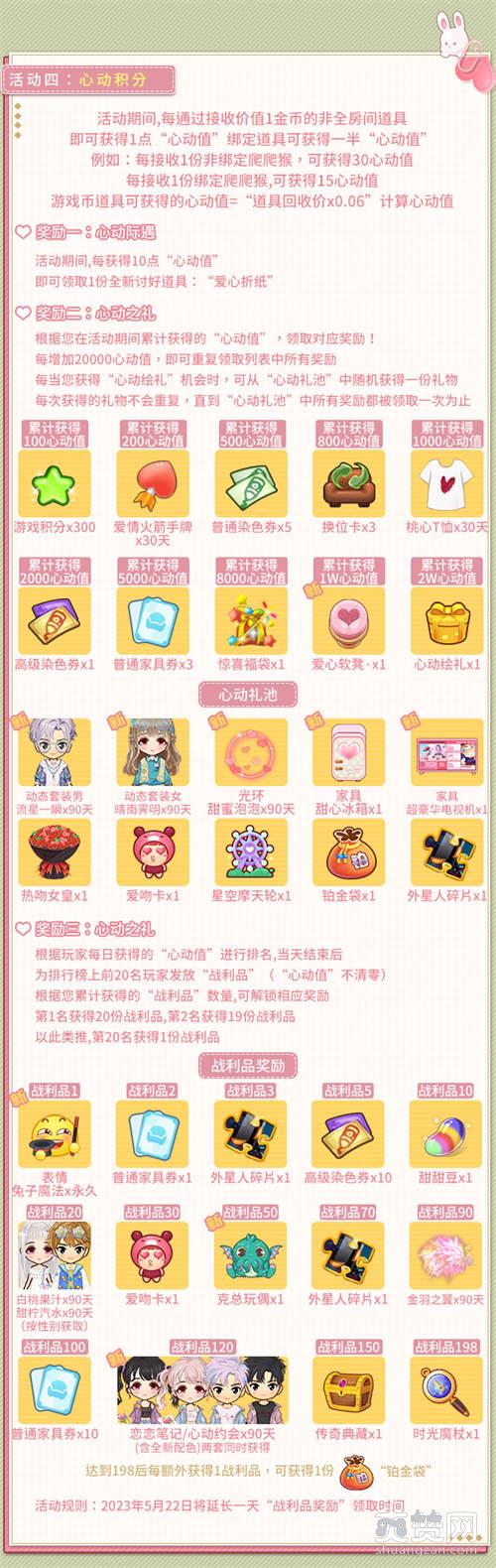 奖励三:根据玩家每日获得的“心动值”进行排名,当天结束后,为排行榜上前20名玩家发放“战利品”(“心动值”不清零),根据您累计获得的“战利品”数量,可解锁相应奖励!