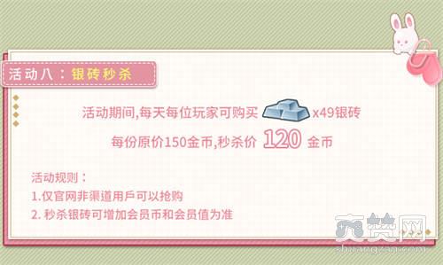 活动期间,每天每位玩家可购买49份银砖,每份原价150金币,秒杀价120金币!