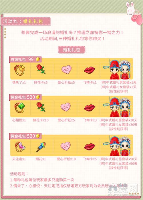想要完成一场浪漫的婚礼吗?推理之都祝你一臂之力!活动期间,三种婚礼礼包等你购买!
