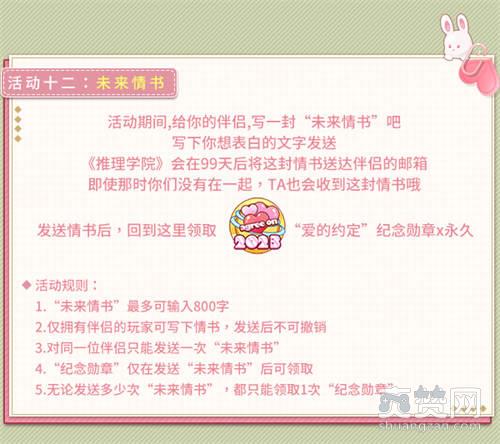 5、无论发送多少次“未来情书”,都只能领取1次“纪念勋章”。