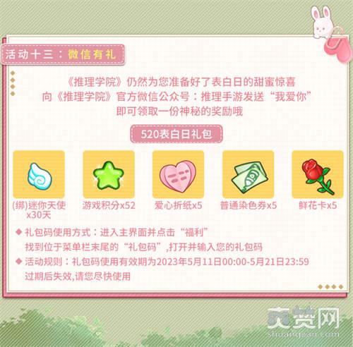 《推理学院》仍然为您准备好了表白日的甜蜜惊喜!向《推理学院》官方微信公众号:推理手游发送“我爱你”,即可领取一份神秘的奖励哦!