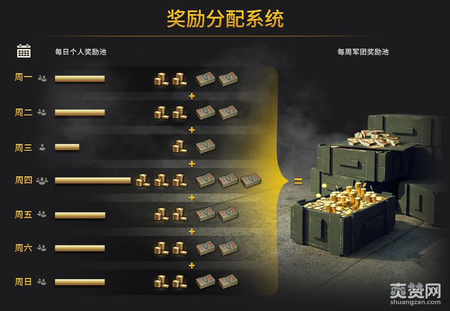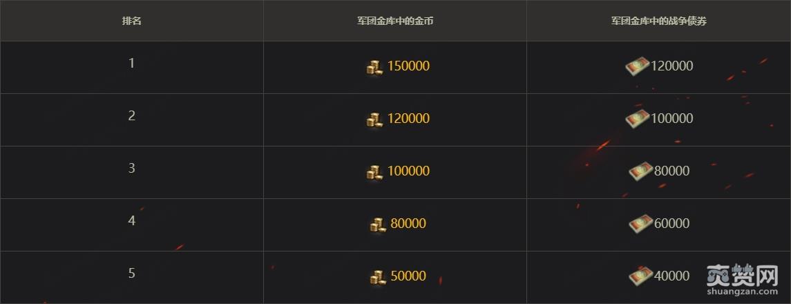 第6赛季结束时,表现最为突出的若干军团将为其军团金库获得额外金币和战争债券。所获得的金币和战争债券数量取决于其赛季军团总结排行榜排名。