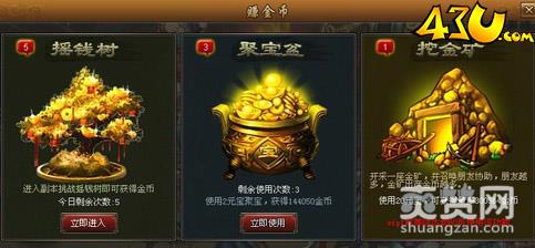 这里充满战斗,但是商机遍地。玩家若想要成为一个有钱人,就要掌握首要的技巧,赚金币啊!虽说摇钱树、聚宝盆和挖金矿都是赚钱的方法,但要说最快的,必定是挖金矿了。