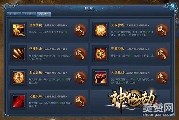 而最后的进阶技能,则以强化玩家各项属性为主,而进阶技能的效果则可以用非同凡响来形容,例如提升玩家对怪物的永久伤害、高达90%的减伤效果,不过要想提升进阶技能,难度也同样不小。在360uu《神仙劫》内,进阶技能的开启与玩家的其他养成体系息息相关,例如金刚伏魔效果可以让玩家对小怪和BOSS造成的伤害提升20%,不过前提是玩家的坐骑能够进阶到五阶方可。强大的进阶技能,使用看得见的效果属性,继续培养你的人物,让你在这个三界唯吾独尊!