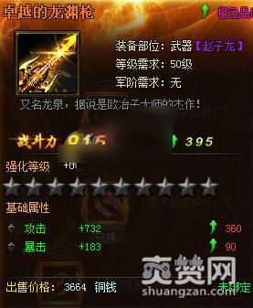 卓越的龙渊枪是50级赵子龙的武器装备,需要9个橙装碎片进行兑换。