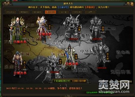 4、野外BOSS刷新在野外场景中,需要等级达到场景最低进入等级的玩家才可进入击杀。