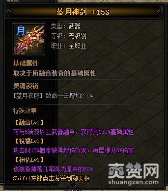 按照上述公式,就能合成皓月·蓝月神剑II,下面再让我们看一下它有哪些独特的属性和特殊效果吧。