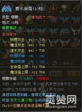 《武易》翅膀与一般的武器装备类似,装备后可以提升人物攻击、防御、生命以及魔法上限等属性。装备的翅膀可以在角色界面的时装里查看。