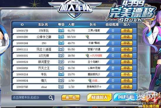 车手们可以查看各车队的信息,并且提交申请哦,每个战队能否加入,会设置申请规则哦!