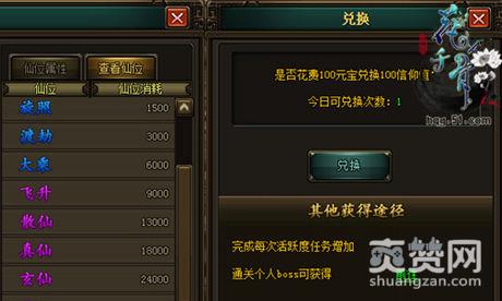 获得道具奖励只是活跃度其中一大奖励,更重要的是在51《花千骨》中活跃度还可以晋升仙位。修仙者经过不断的历练,通过信仰(1点活跃度=1点信仰)获得仙位,从筑基→元婴→旋照……→飞升→散仙→……仙帝→准圣→圣人,玩家每晋升一个仙位都会获得晋升仙位的属性加成。当仙友攻击仙位低于自身的玩家时还可以增加20%的伤害哦!