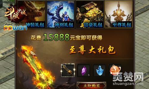 至尊礼包是ppwan《斗破沙城》中的最后一大礼包,也是最豪华的礼包,玩家需要花费15888元宝才可以购买到至尊大礼包哦!开启至尊大礼包,玩家即可获得神器盘古战刃、魂珠碎片、宝石碎片和2000万经验丹!满满的极品可以助你一跃成神,你还等什么呢?