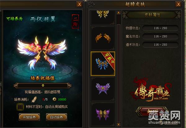 传说上古的玛法大陆上,人类都是天神的后裔,背后的神翼不仅拥有无上神力,更是血统的象征。因此,古人类无比珍视自己的双翼,从矿藏中提炼宝石精华,锻造成光彩耀眼的饰品,装饰双翼来展示个性与身份,从而延续翅膀皮肤的传统。如今,37《传奇霸业》源于上古的翅膀皮肤重见天日,不仅美腻如画,迅捷如风,更能实现多种战力属性的提升。