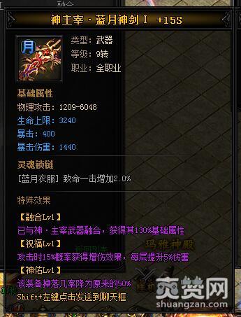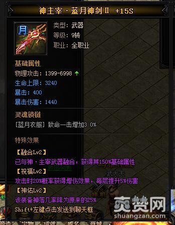按照上述公式,就能合成神皓月·蓝月神剑II,下面再让我们看一下它有哪些独特的属性和特殊效果吧。