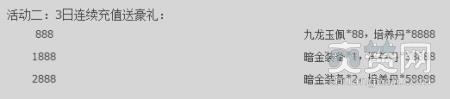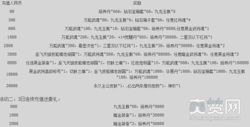 活动内容:活动期间内,单笔充值达到指定金额即可领取活动奖励