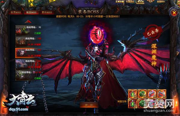 相比其他抢杀BOSS玩法,《大青云》的BOSS战更加人性化,全天24小时开放,满足80级以上的玩家,点击首页“活动大厅”——“世界BOSS”即可进入挑战。游戏中的BOSS战主要分为三类:世界BOSS、地宫BOSS和野外BOSS。