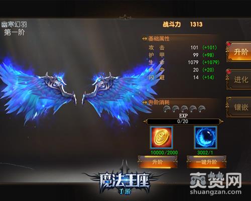 与此同时,玩家还可通过羽翼系统中的升阶、进化等成长体系,逐渐积累,以不断提高羽翼的阶品和星级——阶品、星级提升越多,则其提升的战力值也就越多。