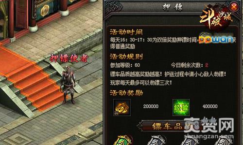 除了直接获取金币元宝的方式,在ppwan《斗破沙城》中还有一些限时活动可以获得金币和元宝。如押镖、万魔窟。押镖任何时候都可以进行,但是每天16:30-17:30为双倍押镖时间,此时押镖可以获得双倍的奖励。当然,此时的玩家也可以通过劫镖获得金币等奖励!