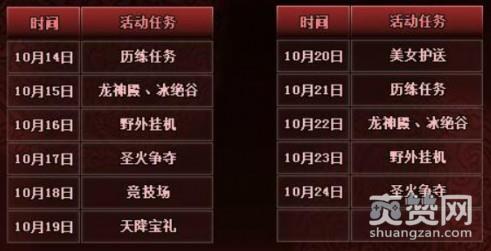 【活动内容】活动期间每天都有一个双倍加成,活动当天完成对应玩法即可获得双倍奖励。