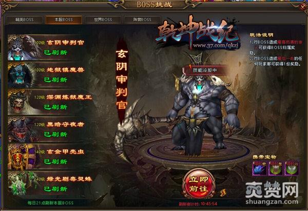 37《乾坤战纪》的本服BOSS将于每日21点定时刷新,并根据世界等级刷新6只对应等级的本服BOSS,对BOSS造成最高伤害的宗门可获得BOSS掉落归属权,最后一击击杀BOSS的玩家可以获得一份额外丰厚奖励,击杀第5只本服世界BOSS,可以获得“玄天令”,获得“玄天令”的宗门方可参与击杀世界BOSS。