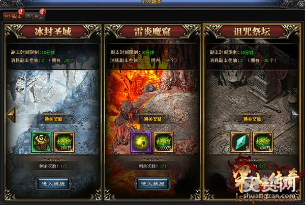 51《梁山传奇》材料副本是羽毛、龙魂、龙珠、龙纹、英雄经验的主要产出途径,此外,还有大量经验掉落!每天只需要花费少许时间击杀通关副本,即可获得海量奖励。玩家进入51《梁山传奇》比奇城安全区,点击材料副本npc,即可选择副本进入,但要消耗副本卷轴。材料副本包括:幽冥大厅、镇魔神殿、邪恶禁地、诅咒祭坛、冰封圣域与雷炎魔窟,每个副本每天可进入2次。由于难度系数的不同,对应的玩家进入等级也不同。51《梁山传奇》材料副本每日0点会重置进入次数,如果你想每天拥有更多通关副本的机会而不浪费,就要在0点刷新之前用完当前进入次数哦!除了等级限制,每次进入材料副本需要消耗2个副本卷轴。