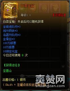 但要注意的是圣兽山并非安全地图,在开启宝箱时还得随时注意旁边是否有人对宝箱蠢蠢欲动,如果装有各种坐骑进阶丹、陨铁、名器升阶丹、金蚕丝、绑元与大量银票的白莽宝箱就在即将收入囊中的时候被人夺去,恐怕谁都要欲哭无泪。所以,看准宝箱,照顾自己!