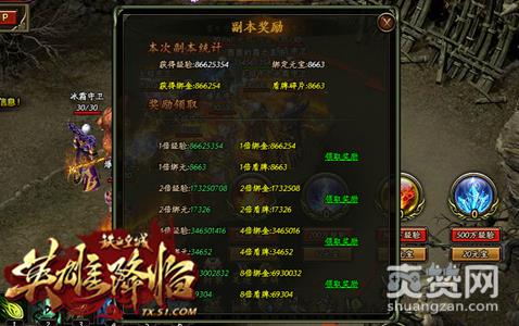 下面再来看看51《铁血皇城》常规的65级经验副本,每日可以进入两次经验副本,每次可以获得3000万经验值。同样每次可以选择3倍领取,只不过要稍微花一点元宝而已。正常一倍领取情况下可以收获6000万的经验值,3倍领取的情况下可以接近2亿。