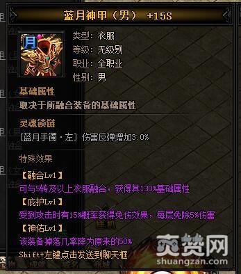 按照上述公式,就能合成神主宰·蓝月神甲I,下面再让我们看一下它有哪些独特的属性和特殊效果吧。
