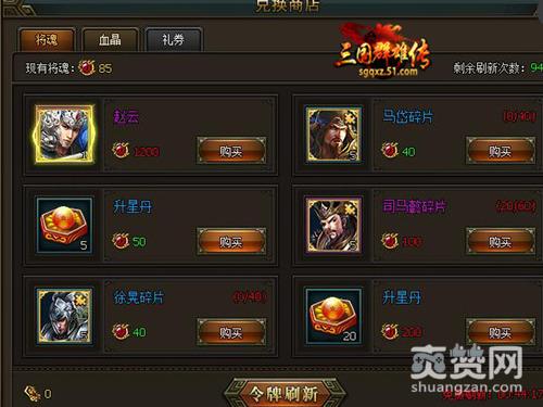 当然,当玩家手上的率将,蓝将多的时候,可以通过分解来获得将魂,将魂更是可以在兑换商城兑换各种道具和高级武将碎片,当然有幸的也可能兑换出武将的。当武将碎片集齐一定的数量时,就会合成武将,届时驰骋沙场不是梦!