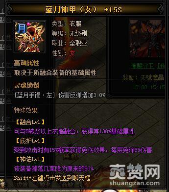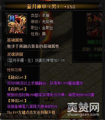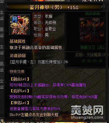 按照上述公式,就能合成神热血·蓝月神甲I,下面再让我们看一下它有哪些独特的属性和特殊效果吧。