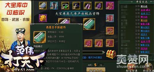 比如充满着致命吸引力的武林绝学,全游戏只有大宝库才有产出;比如极品首饰,让刷了上千次BOSS都拿不到好装备的脸黑玩家看到了提升战力的希望;比如高级经验晶石,让为卡级烦恼的玩家看到了转生的曙光!