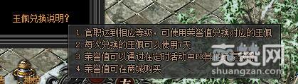 1.官职达到相应等级,可使用荣誉值兑换对应的玉佩。