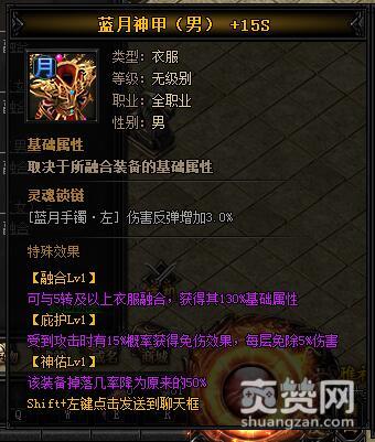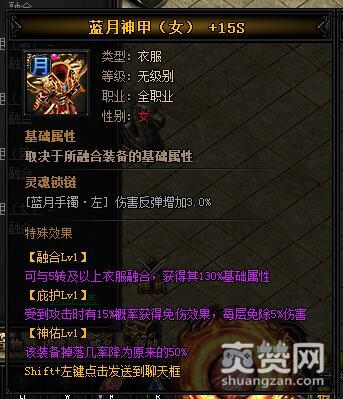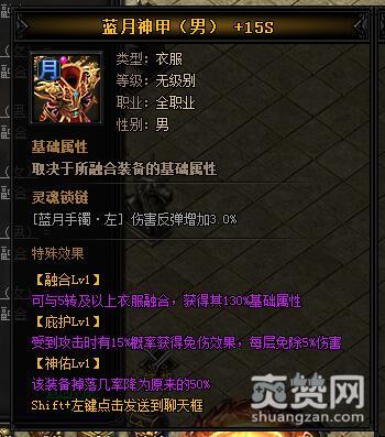 按照上述公式,就能合成圣天龙·蓝月神甲I,下面再让我们看一下它有哪些独特的属性和特殊效果吧。