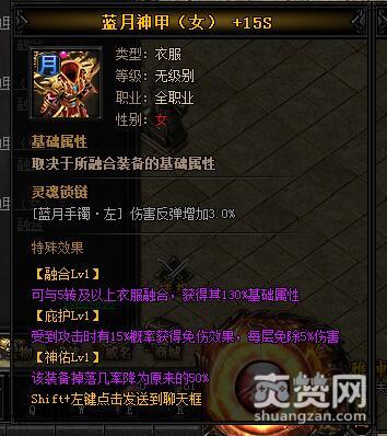 按照上述公式,就能合成圣天龙·蓝月神甲I,下面再让我们看一下它有哪些独特的属性和特殊效果吧。