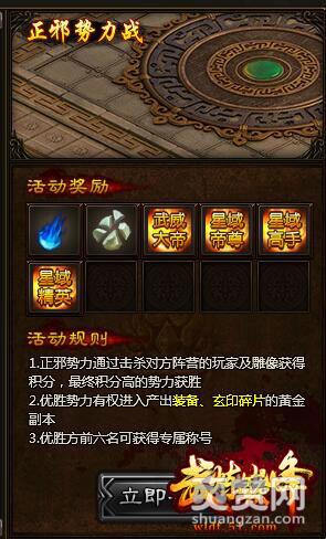 正邪自古势不两立!51《武炼巅峰》中每日下午8点,正邪双方势力可参与全服对战!击退敌对玩家、摧毁对方雕像即可获取积分。战斗结束后双方都可以开启特殊副本,胜利方副本奖励高级材料等,失败方副本奖励低级材料。玩家个人则根据积分排名获得称号奖励!