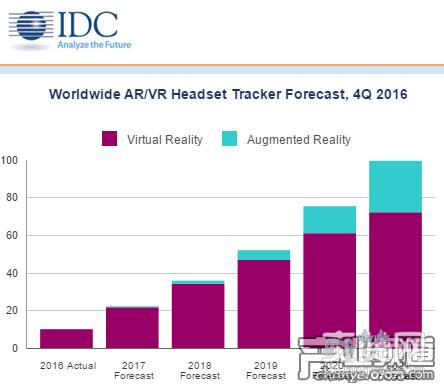 IDC的评估报告显示,未来四年增强现实(AR)的市场规模将会是虚拟现实(VR)的两倍。报告中预测,在2021年AR和VR设备的总发货量有望超过9940万台,而目前AR和VR设备总发货量为1010万台。