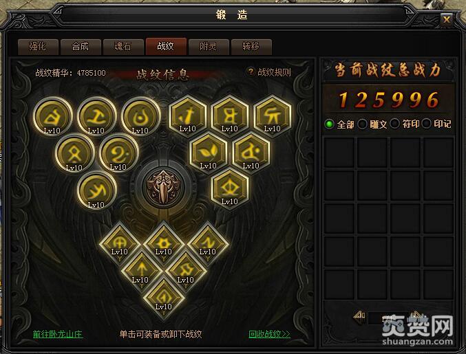 XY游戏《蓝月传奇》今日在龙族宝藏中开放了战纹寻宝,相信有不少玩家已经摇出了自己心仪的战纹了吧。为了给大家看战纹传说级的属性加成,小编今天花了一上午时间,耗巨资进行寻宝,终于集齐全套黄金战纹了。今天,小编就带给玩家战纹全传说级符印属性一览,希望大家能够喜欢。