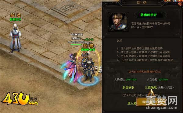 海量的妖魔鬼怪代表着海量的经验值,成功击杀怪物后,便能获得人物与内功经验奖励,在通关副本后,玩家还能通过花费元宝来领取到最高三倍的奖励。