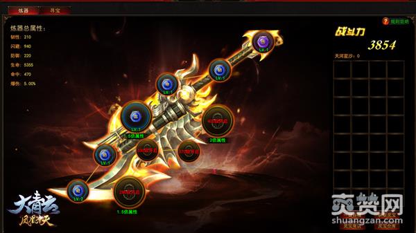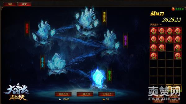 在《大青云》里,炼器系统中分为炼器和寻宝两个部分。炼器随2转(200级)解锁,一共10个镶嵌位,每个镶嵌位可镶嵌不同属性的灵宝,其中有两个特殊镶嵌位提供1.5倍属性加成,一个特殊镶嵌位提供2倍属性加成。