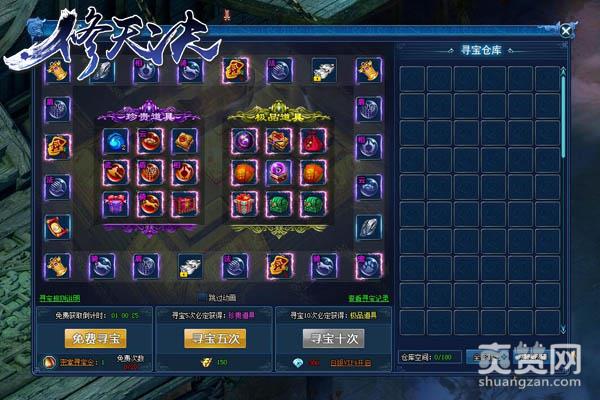 寻宝何必费劲,咱们在《修天决》密室寻宝玩法里不仅可以免费寻宝,更有九种珍贵道具与极品道具等待玩家挖掘。玩家即可通过在线时长与密室寻宝令为自己积攒寻宝次数,也可消耗元宝进行快速寻宝,每次寻宝都100%获得一种道具,花费元宝必定获得珍贵道具,花费钻石寻宝必定获得极品道具哦!