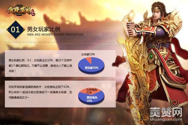 2016年4月6日公测至今,《贪玩蓝月》已经陪伴了玩家们8760小时。一周年之际,《贪玩蓝月》公布了游戏中的各项大数据,男女玩家比例:91,女玩家占比10%,每10个兄弟中就1个是红颜知己。巾帼不让须眉,谁说女人不能上场杀敌!而在所有玩家选择的角色中,女性角色占到了42%,所以和你一起战斗的女性角色不一定是美女玩家,也可能是威武汉子~