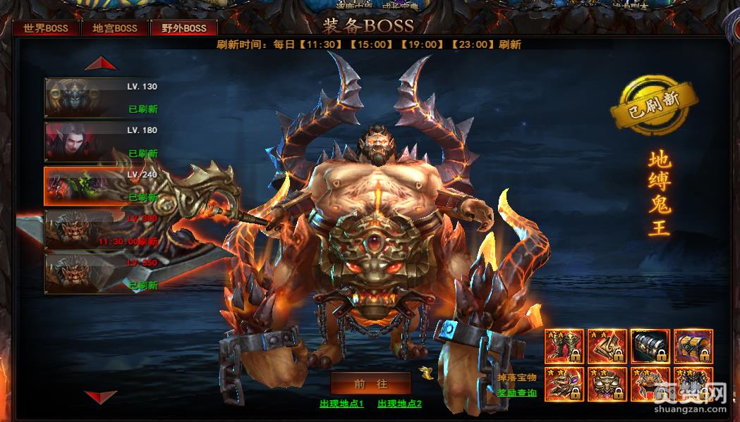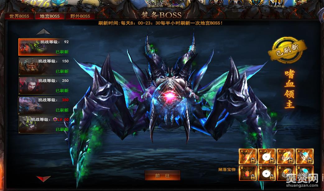 装备bOSS里分为三种BOSS副本,世界BOSS地宫BOSS和野外BOSS