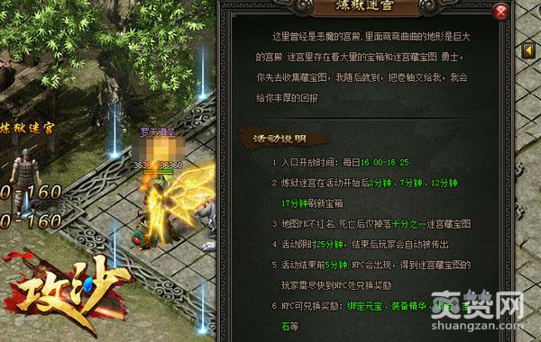 1、炼狱迷宫是个定时活动,活动开启后玩家可进入场景寻宝;
