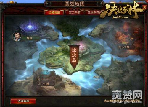 最后一个也是最关键的一个活动—— “王旗争夺”。51《决战武林》王旗争夺的奖励宝箱足够诱人,就看你有没有实力去拿。王旗争夺要遵循哪些规则?连70级都没达到你注定就与冰火岛和王旗争夺无缘了。每次开启时间为21:00~21:30。活动一旦开始,冰火岛将成为尸横遍野的主战场,刷新一面王旗,世界玩家都会一起朝着王旗发动进攻。需注意的是:同一个服务器的勇士只能相互协作,不能相互攻击,对王旗造成伤害最多的服务器将会获得最终的胜利。
