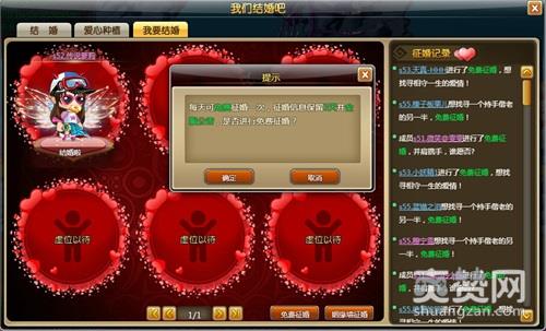 我们结婚吧!58wan《冒险世界》中,想要结婚但是没有认识的对象的话,可以进行征婚.征婚有两种方式,免费征婚和姻缘墙征婚.每天可以免费征婚一次,征婚信息会保留3天并且进行全服公告.姻缘墙征婚的话是需要花费20钻石,进行姻缘墙征婚后,会把玩家的形象放在婚姻墙上,并且会进行全服推送广播.