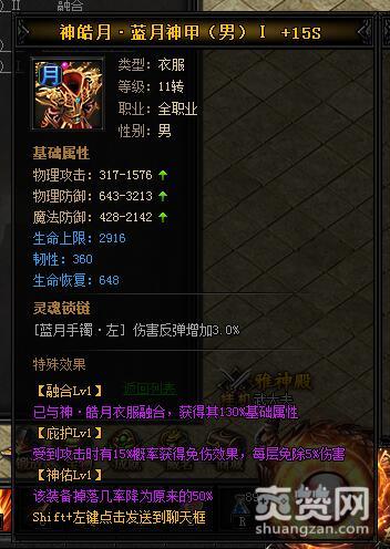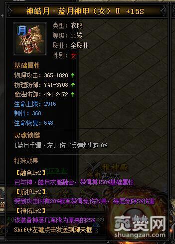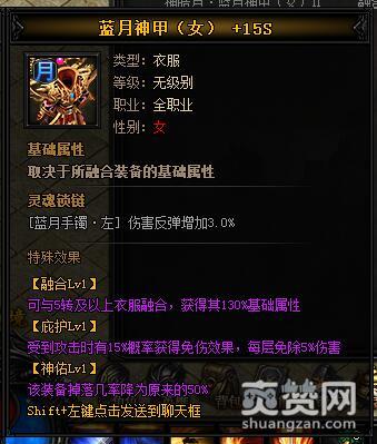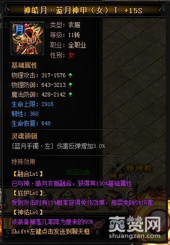 按照上述公式,就能合成神皓月·蓝月神甲II,下面再让我们看一下它有哪些独特的属性和特殊效果吧。