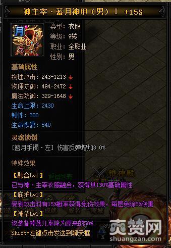 按照上述公式,就能合成神主宰·蓝月神甲II,下面再让我们看一下它有哪些独特的属性和特殊效果吧。