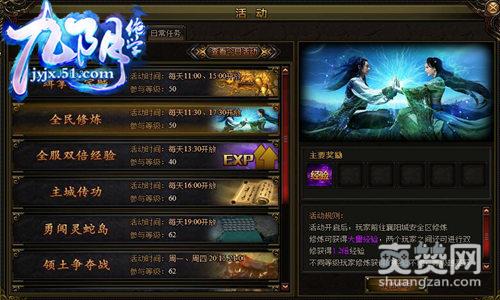 每天在游戏中定时都可以参加一些系统活动,都可以获得大量的经验值。全民修炼:活动时间是每天中午11点30分到12点30分,17点30分到18点30分。活动开启后,玩家前往襄阳城安全区修炼。可以获得大量经验,两个玩家之间还可以进行双修获得1.2倍经验。这也是一提升自己的好方法。