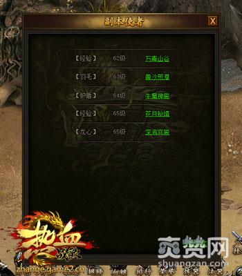 在哥们网《热血战歌》的副本有:封魔副本、副本使者两个。其中副本使者是玩家获取经验、羽毛、护盾和龙心的材料场所,而封魔副本是玩家获取海量经验的场所。而且,每个副本进入都有一定的次数限制,所以每天的副本必然不能错过噢。
