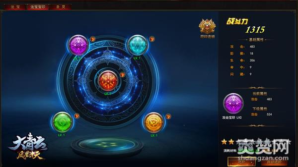 当法宝达到6阶以后便会开启法宝宝印功能,物品,我们可以清楚地看到图上有五个位置,这五个位置分别放置了攻击、防御、生命、命中、闪避5种属性值,达到一定等级后可激活符印连锁,消耗法宝进阶石可以为不同属性的宝印进阶,从而提升角色战力。