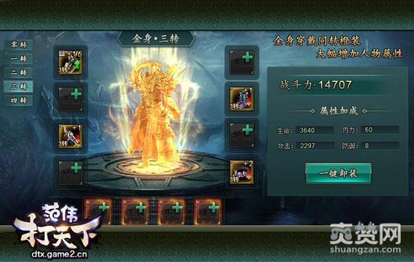 玩游戏,最重要的就是开心;一个牛逼的角色,最要紧的就是装备整整齐齐的!拿着极品武器走天涯,金身转生威力大。登录哥们网《范伟打天下》,你也可以金身转生穿上极品装备!